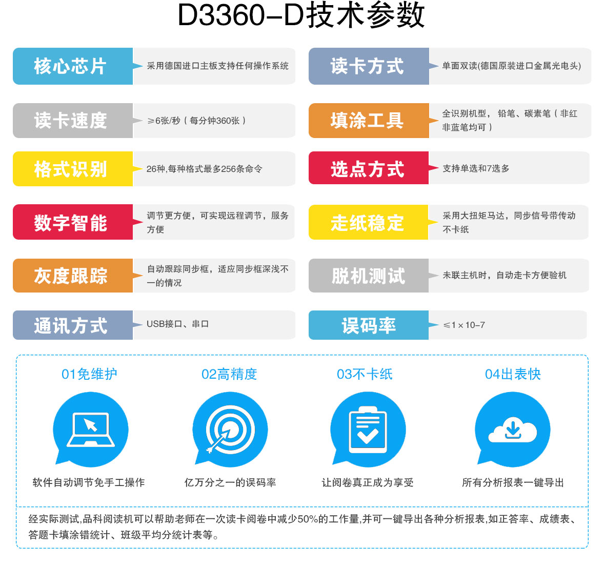 光標閱卷機D3360-D全自動識別鉛筆,碳素筆。支持單選多選,能一鍵插拔,讀卡速度能達到6張/秒