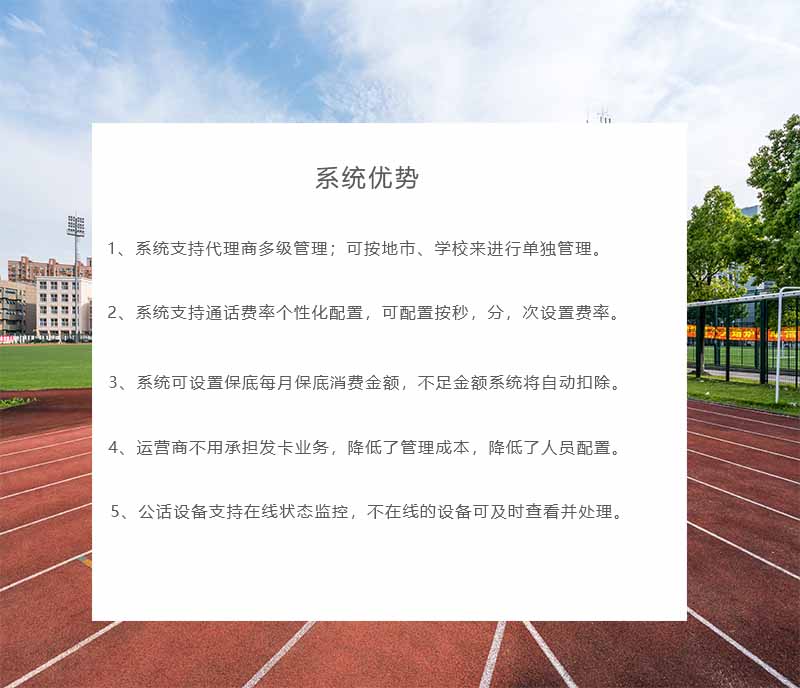 系統還可設置通道時長限制,針對學校需求進行對應功能開放,使學校能得到適合自己的性價比高的產品,僅有后臺管理人員可查看各類報表,如充值報表、消費報表等。系統具有安全性、及時性、準確性高的特點,可以保證學生的各種安全信息不會被泄露。