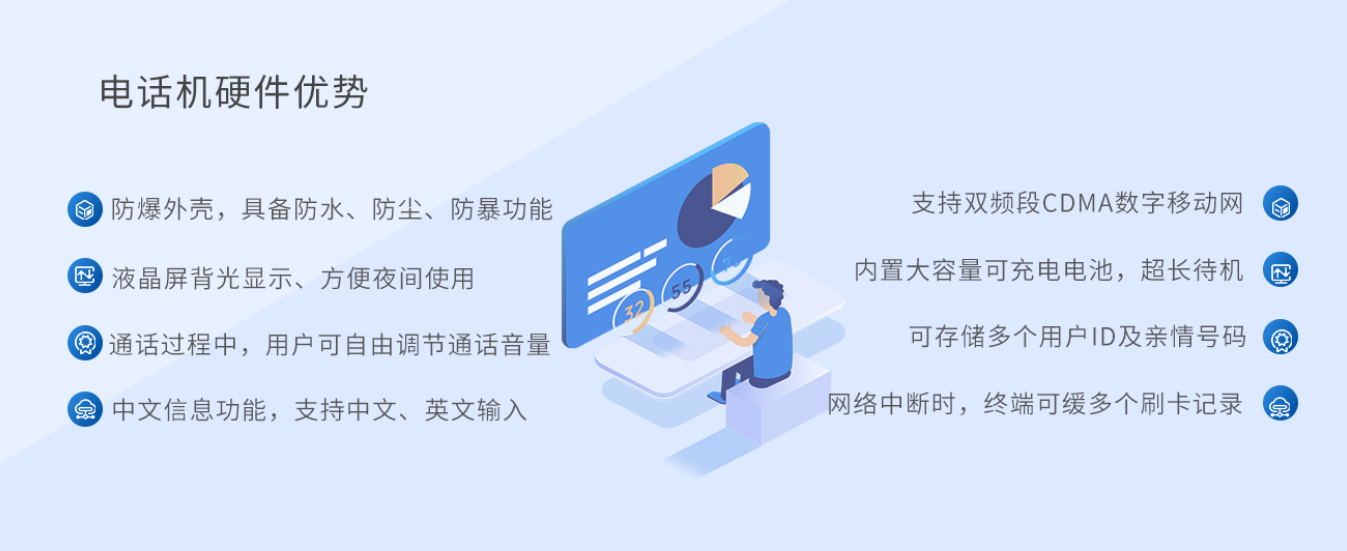 校園電話機充分考慮用戶需求,外觀結構精美,每一個細微之處都在追求更高的品質。采用防爆外殼,數碼液晶顯示屏,方便夜間顯示,工業級手柄,耐磨耐腐蝕,抗噪能力強,采用高檔鋅合金按鍵,使用壽命≥200萬次,可存儲3500個用戶ID以及10500個親情號碼,方便用戶使用。